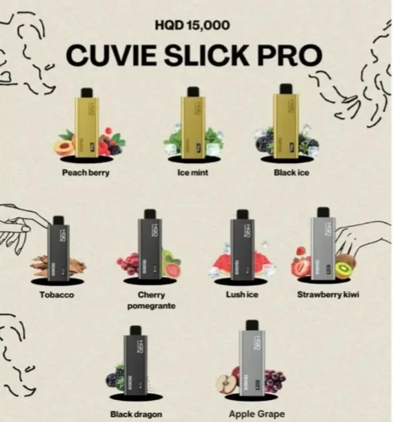 Available Flavors HQD Cuvie Slick Pro 15000 Puffs in UAE