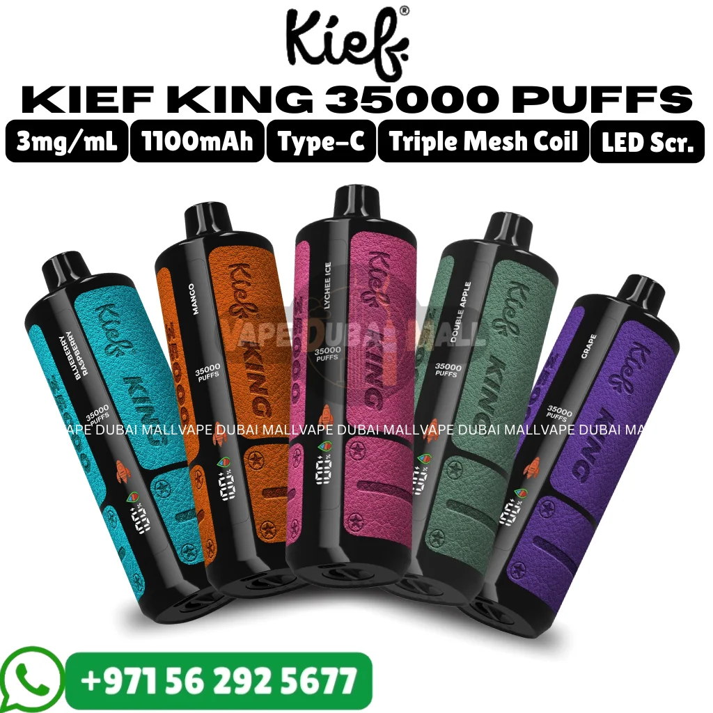 Built for performance and ease of use, the KIEF King 35000 Puffs disposable vape is ideal for both beginners and experienced users. The device comes pre-filled and ready to use—simply inhale to activate. With no refilling or coil changes required, it offers a hassle-free vaping experience that fits perfectly into the fast-paced Dubai lifestyle.