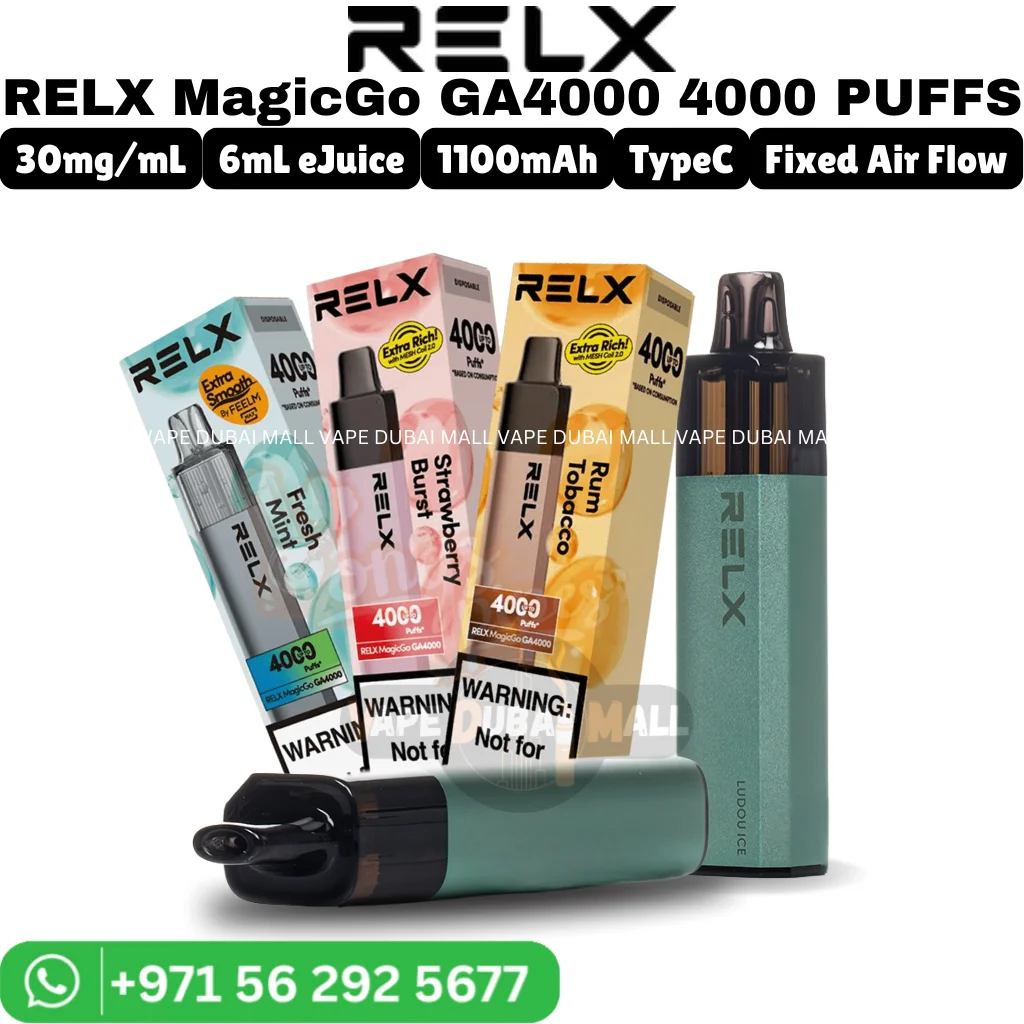 The RELX MagicGo GA4000 4000 Puffs offers smooth, rich flavor in a pocket-friendly design. Just inhale and enjoy consistent vapor with no setup — ideal for everyday vaping in Dubai and across the UAE.