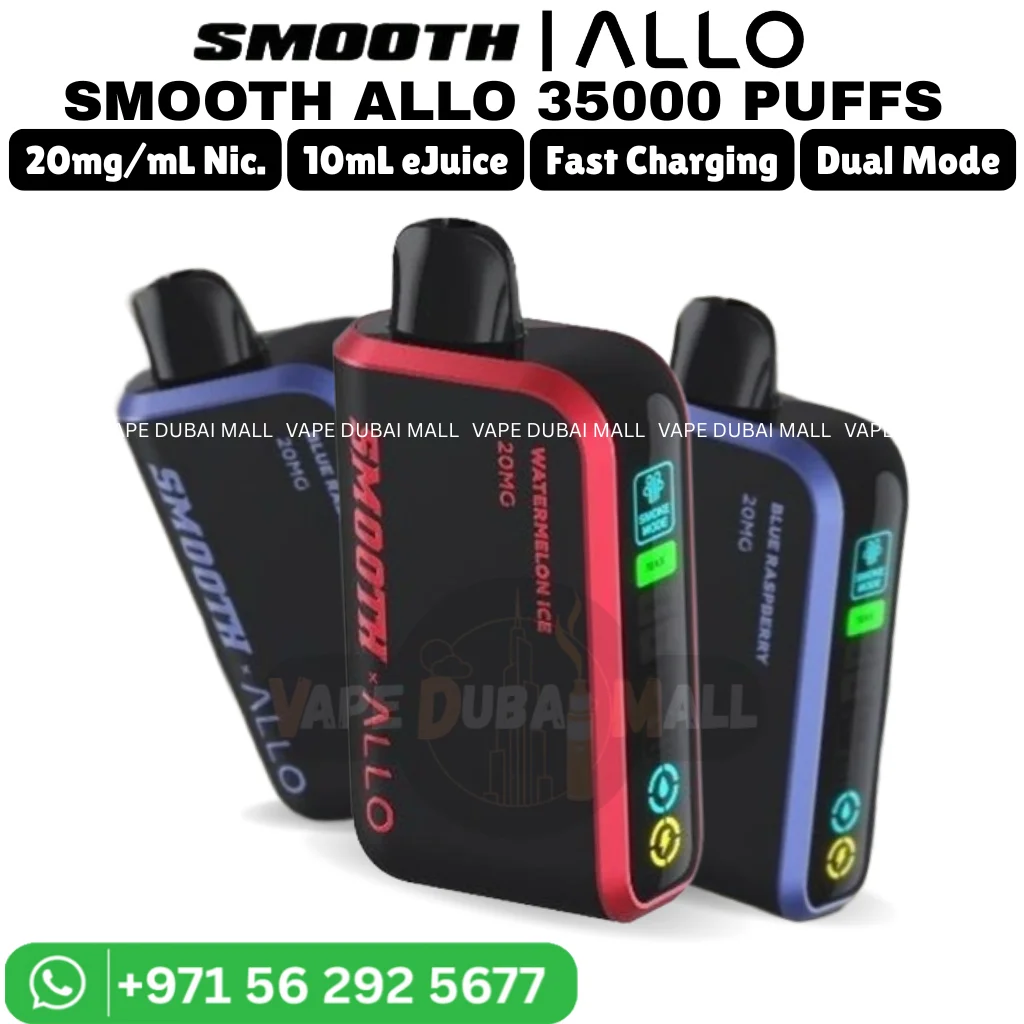 The SMOOTH ALLO 35000 Puffs is an excellent choice for vapers in Dubai and the UAE who want long-lasting performance, smooth flavor, and effortless use. With its rechargeable design and premium flavor output, it’s ideal for both new and experienced vape users.