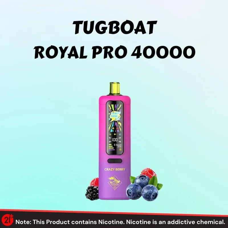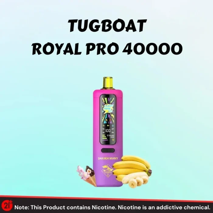 Discover TUGBOAT Royal Pro 40000 Puffs Disposable Vape in Dubai. 40,000 puffs, rich flavors & advanced vaping tech. Shop now.