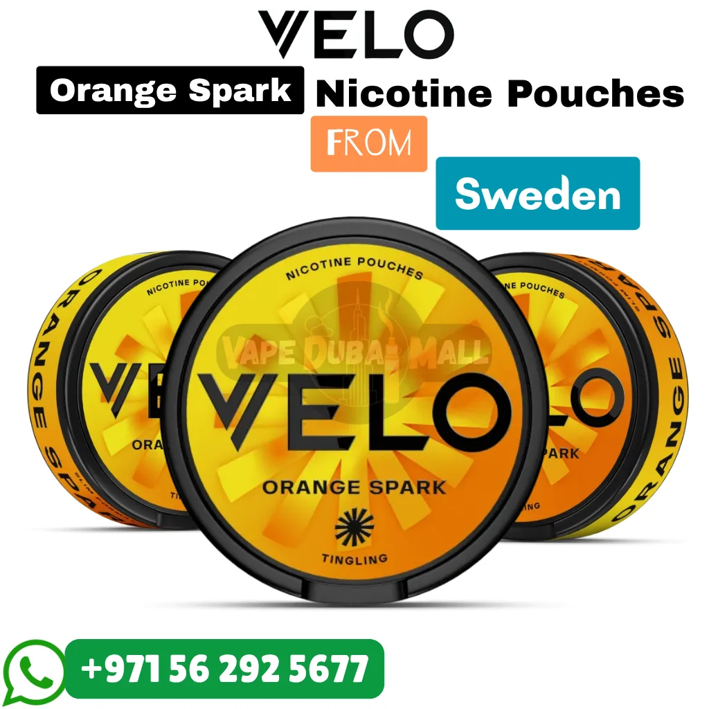 Discover VELO Orange Spark Nicotine Pouches in Dubai. Citrus freshness + sparkling kick. Shop now with fast UAE shipping.