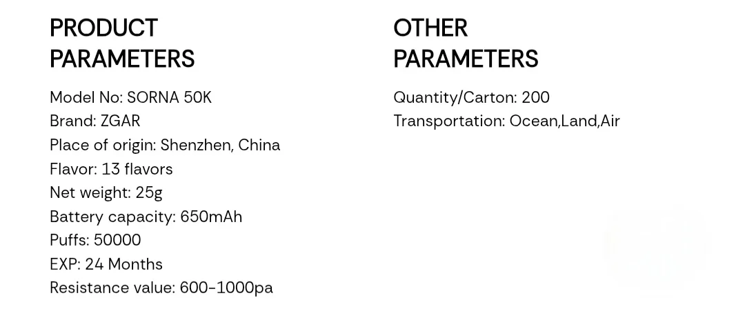 Specifications – ZGAR 50000 Puffs Disposable Vape